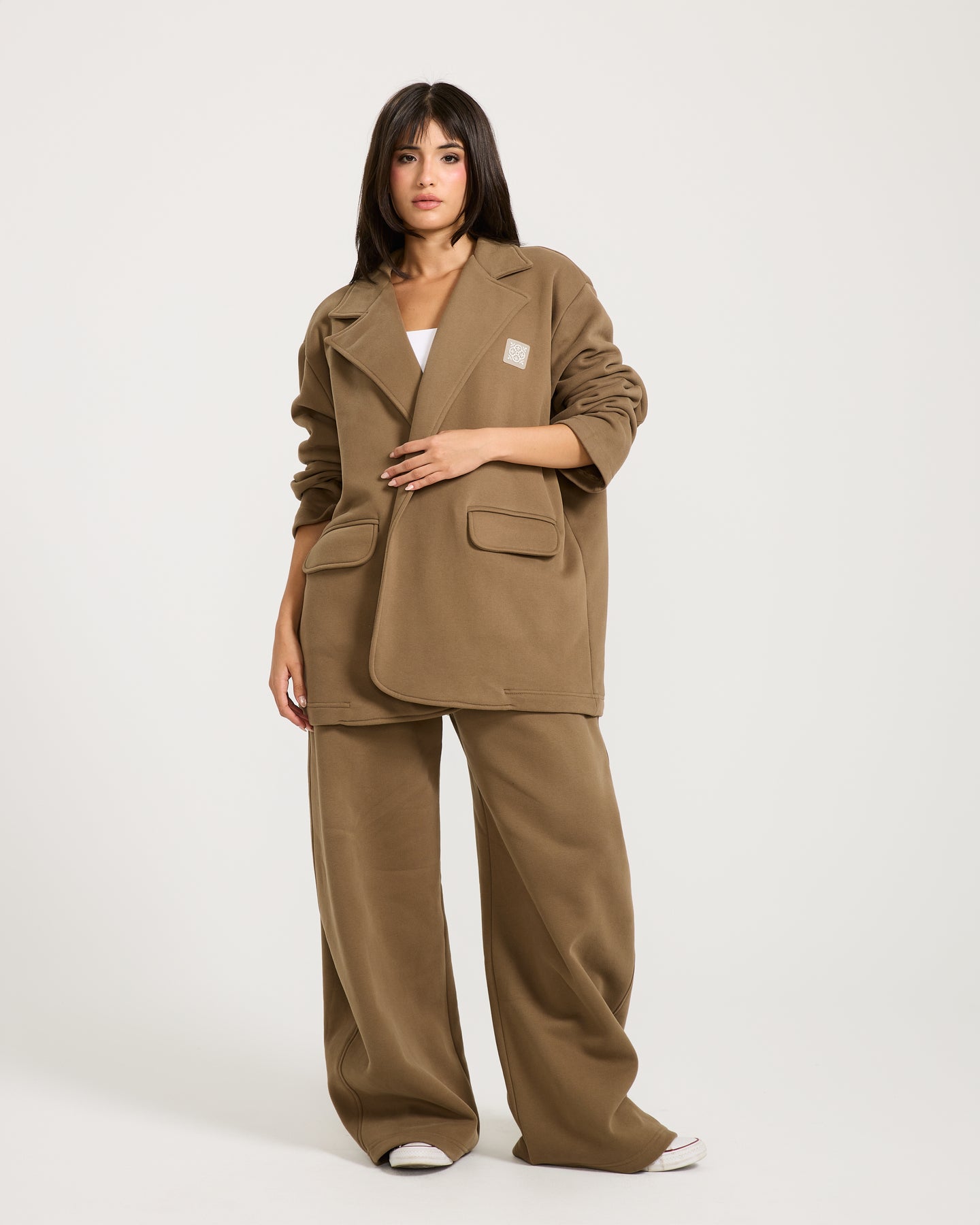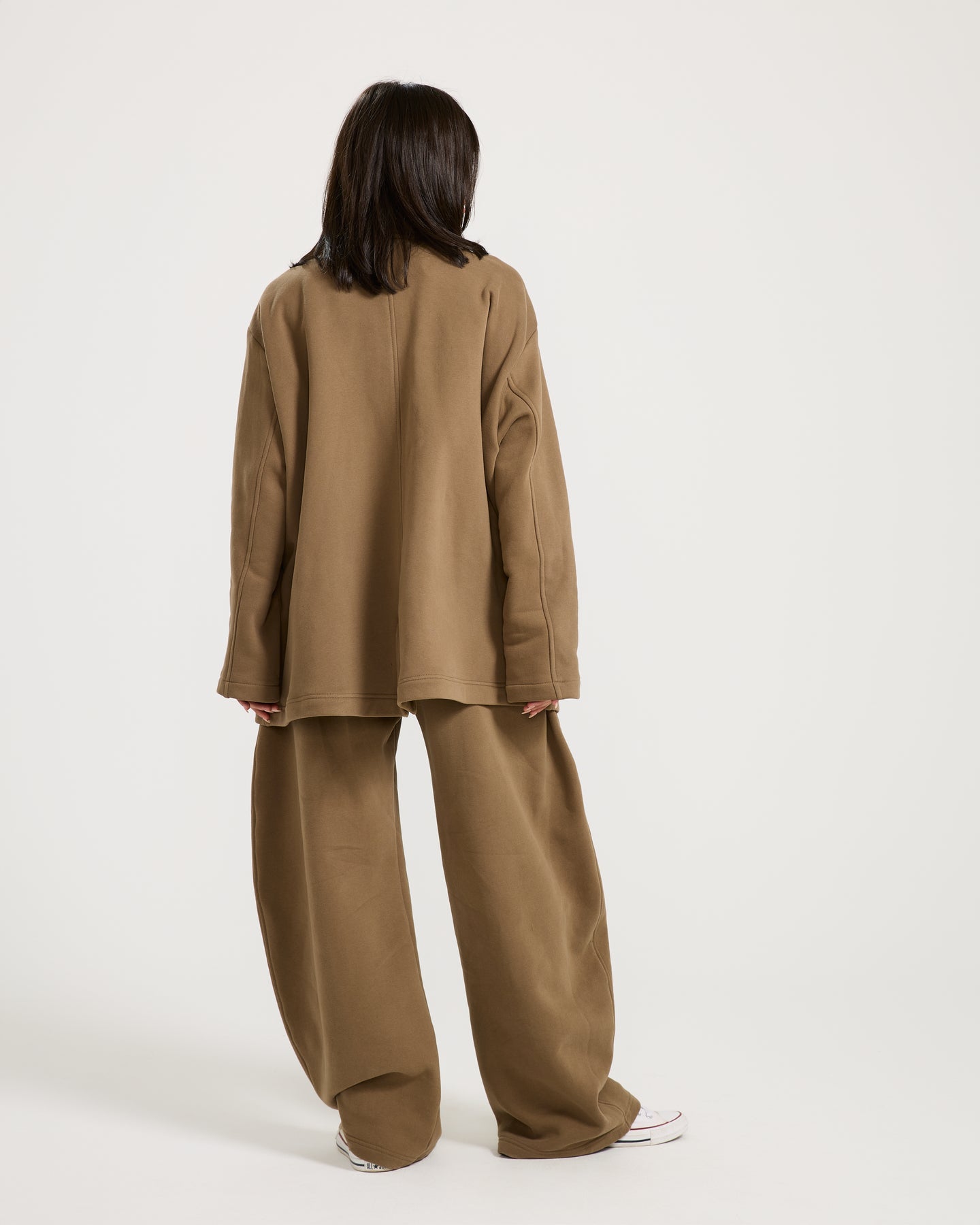This fleece-lined track blazer has a clean, oversized fit with a sporty edge, making it perfect for cozy everyday styling.