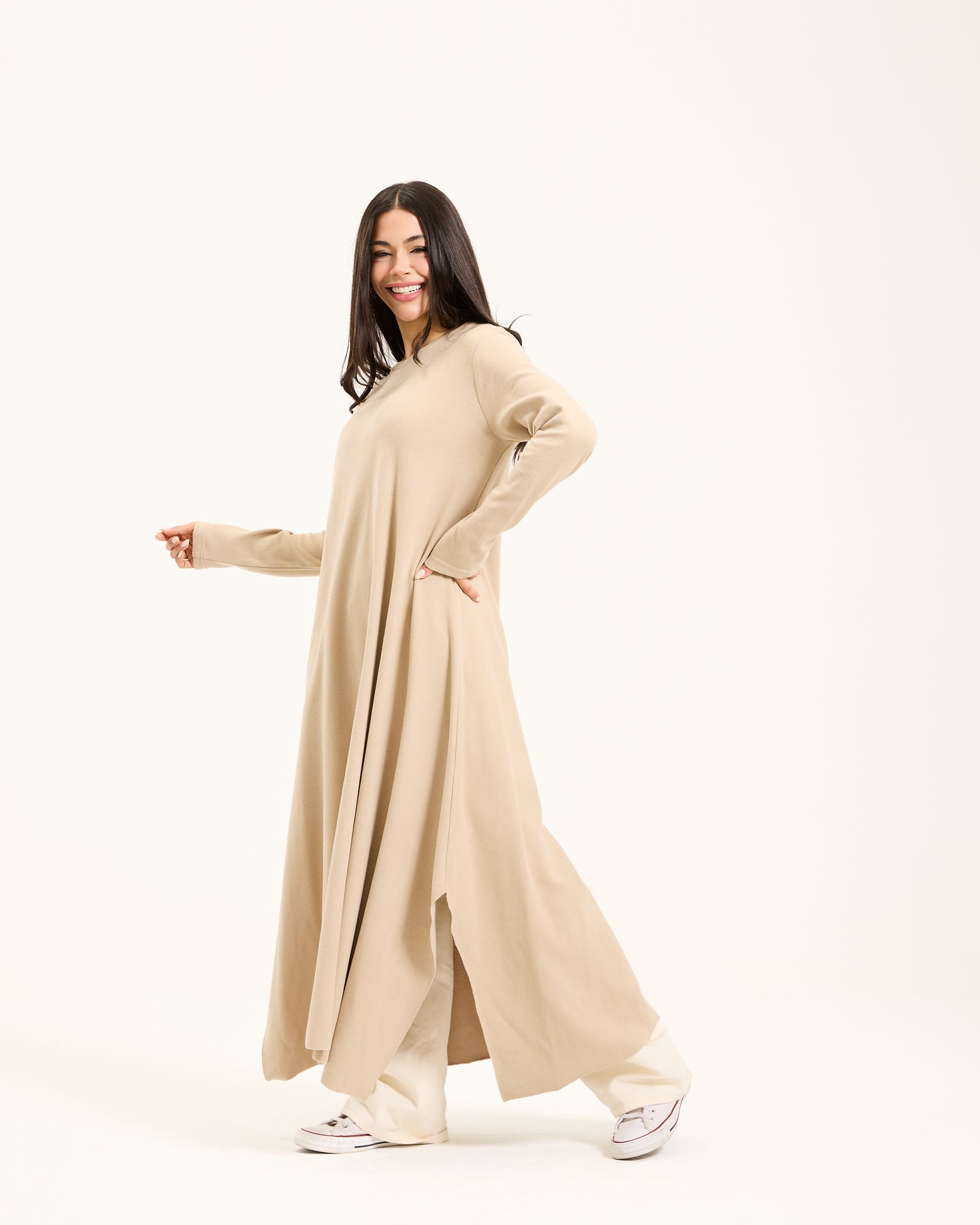 This asymmetrical dress is an essential in every wardrobe, perfect for layering or wearing alone