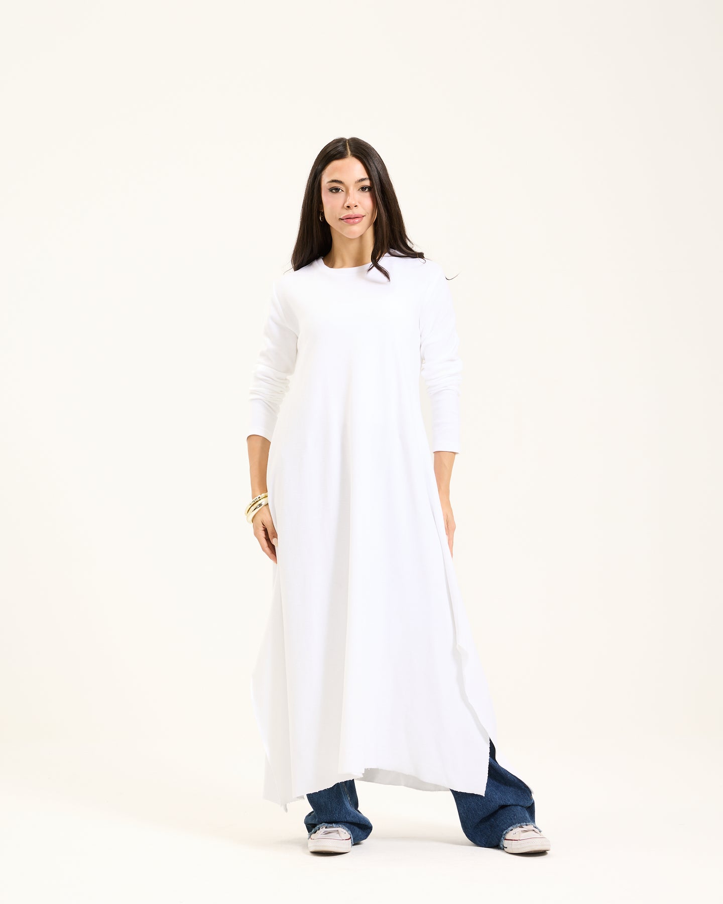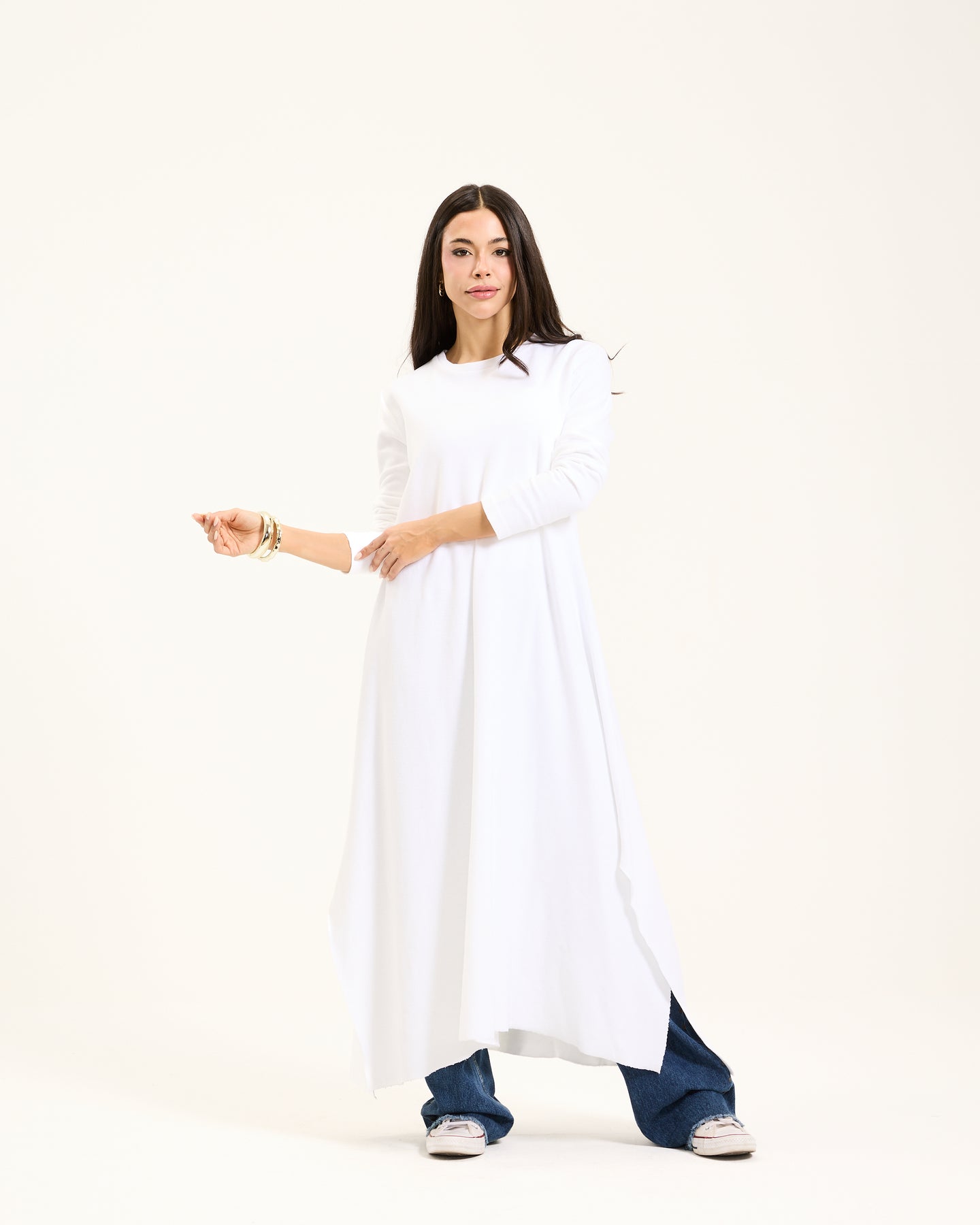 This asymmetrical dress is an essential in every wardrobe, perfect for layering or wearing alone
