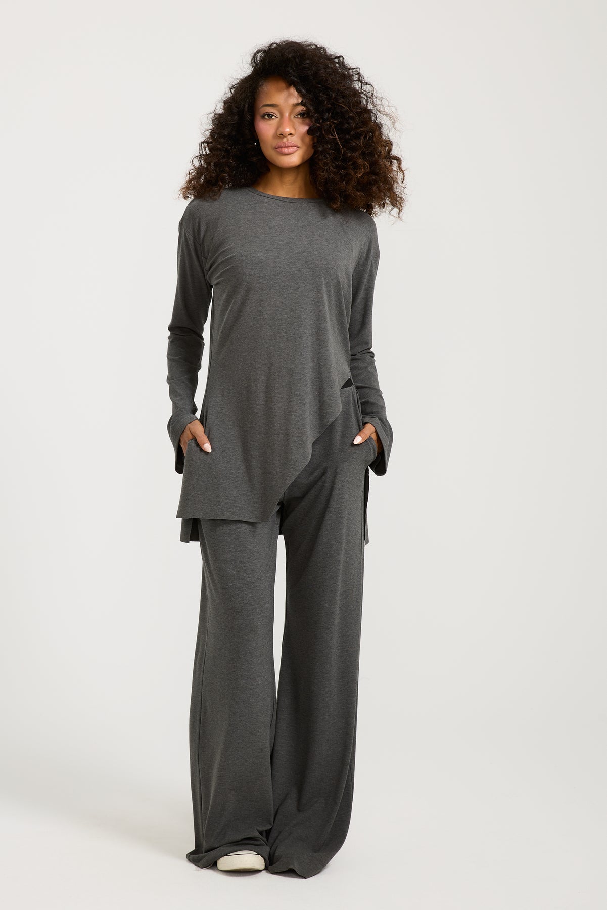 This staple top has an asymmetrical cut, adding edge to the most comfortable, practical basic