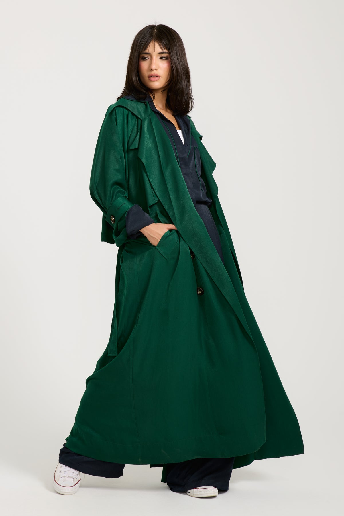 This light trench is perfect for transitional weather, with its stunning color, this coat is a stable in every closet this season
